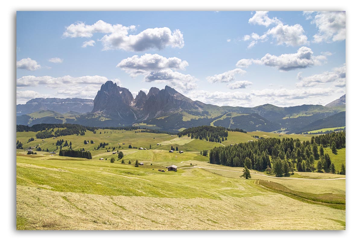 Dieses Foto von der Seiser Alm wirkt übrigens sehr gut auf Leinwand und Hartschaum.