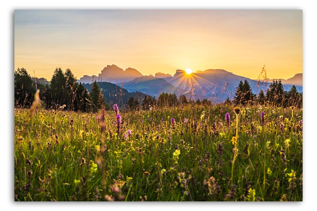Viertes Foto vom Sonnenaufgang auf der Seiser Alm in Südtirol als Wandbild.