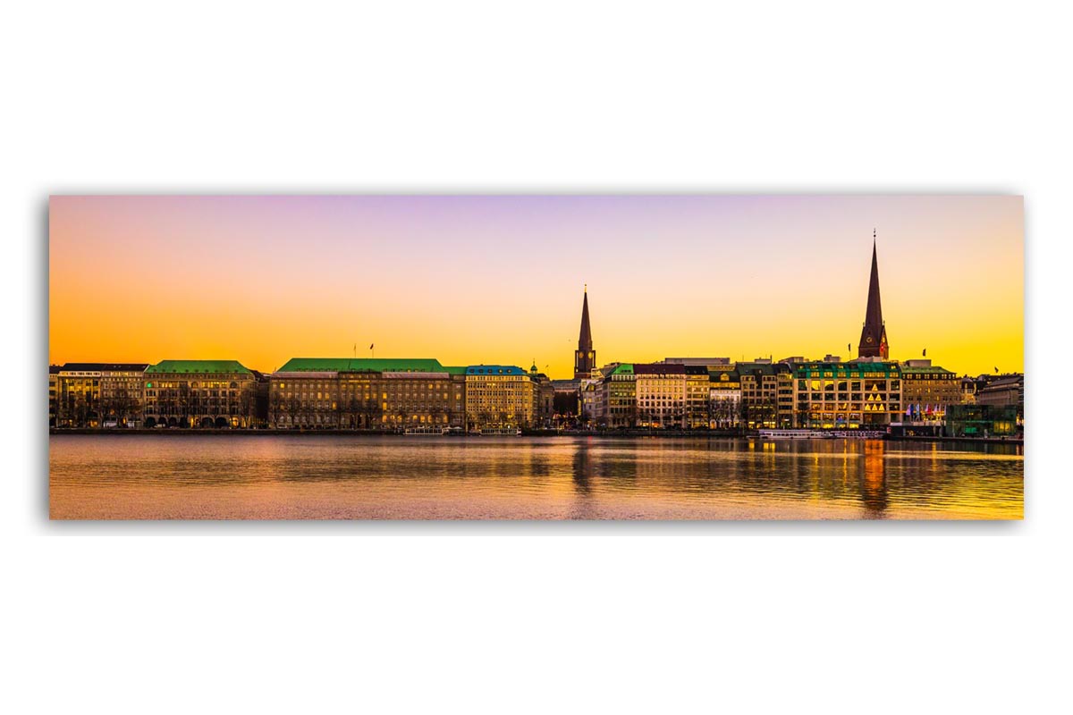 Panoramabild der Binnenalster bei Sonnenuntergang als Wandbild